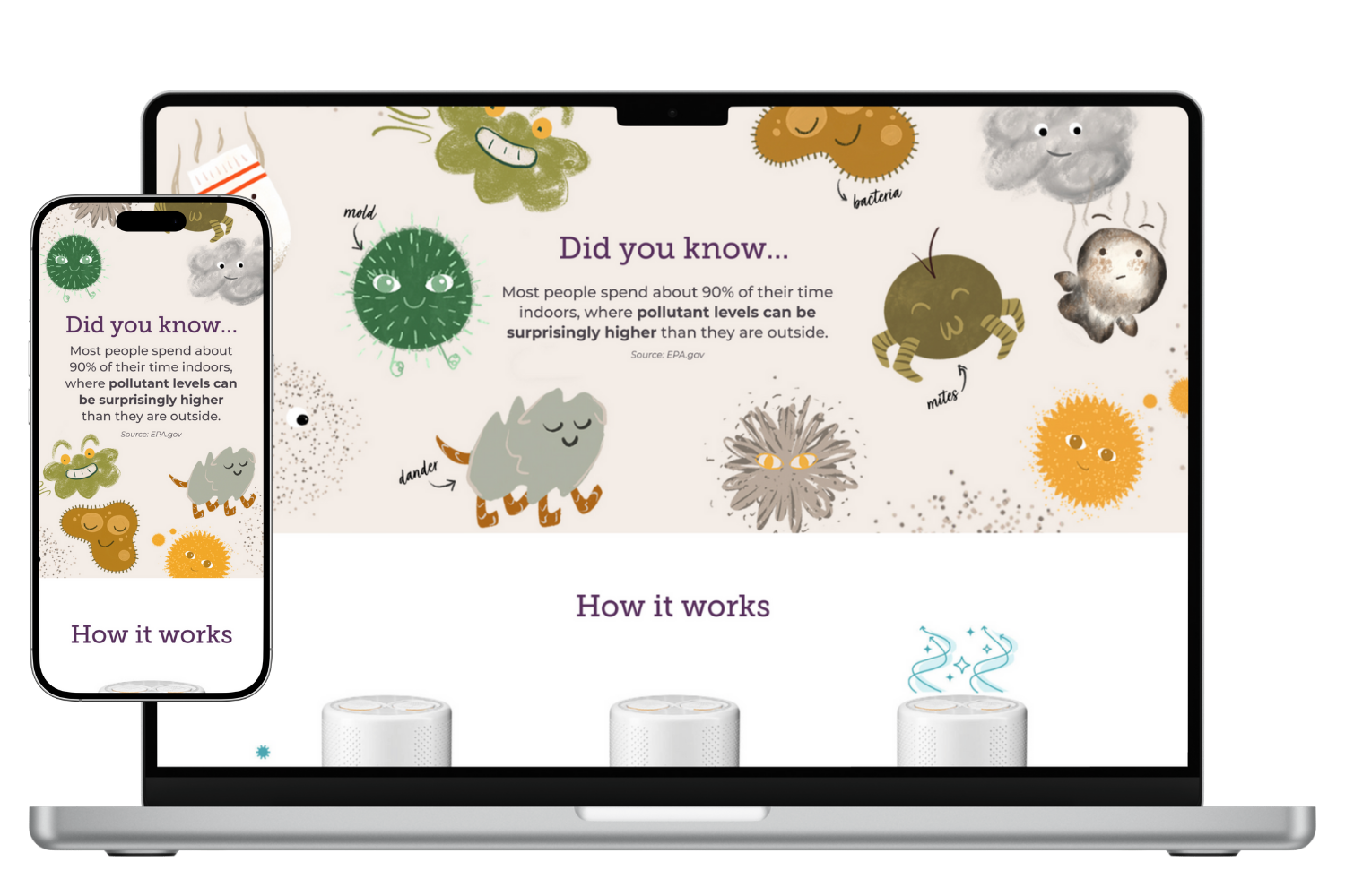 Bright, chaotic, joyful creative that looked nothing like sterile air purifier ads. Every piece of creative said: we're not here to make you afraid of your life, we're here to help you enjoy it more.